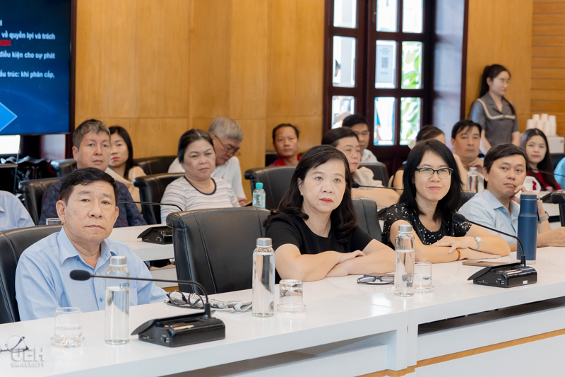 Trong Chuyên đề 3: Công tác phối hợp trong tiếp công dân và giải quyết đơn thư của UEH, TS. Nguyễn Tấn Khuyên nhấn mạnh tầm quan trọng của công tác tiếp công dân và giải quyết đơn thư trong bối cảnh UEH phát triển với quy mô ngày càng mở rộng, đa ngành, đa lĩnh vực. Báo cáo viên đã hệ thống hóa quy trình tiếp nhận, phân loại, xử lý đơn thư; phân định rõ vai trò, trách nhiệm phối hợp giữa các đơn vị; đồng thời lưu ý những điểm mấu chốt giúp bảo đảm tính minh bạch, kịp thời và hiệu quả trong việc giải quyết phản ánh, kiến nghị của người học và viên chức. Đây không chỉ là yêu cầu pháp lý mà còn là yếu tố quan trọng để xây dựng môi trường làm việc, học tập dân chủ, thân thiện tại UEH.